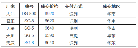 據(jù)找塑料網(wǎng)成交數(shù)據(jù)顯示(見表1),今日上午國內(nèi)PVC市場價格在期貨及運費大漲的預期下繼續(xù)瘋狂拉漲,場內(nèi)交投氣氛活躍,部分封盤不報,在需求并未有大的好轉之下,目前市場貿(mào)易商存在大量囤貨現(xiàn)象。今日華東電石法SG-5主流價格維持在6450-6550元/噸(自提);華南市場普通5型電石料主流成交價6500-6600元/噸(自提)。
