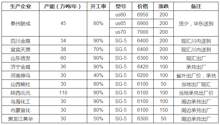 今日部分PVC出廠價格跟漲,5型普通電石料內(nèi)蒙地區(qū)周邊主流承兌出廠5900-5950元/噸,山東地區(qū)主流承兌出廠6100-6200元/噸,華東地區(qū)乙烯法企業(yè)主流送到價格6700-6800元/噸。