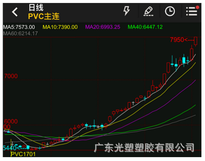 今日1701合約強勢上漲,開盤報7780元/噸,最高報7950元/噸,最低至7735元/噸,收于7950元/噸,上漲340元/噸,成交量311484手,持倉量減少16614手至173158手。找塑料預(yù)計短線1701合約將維持震蕩偏強行情。