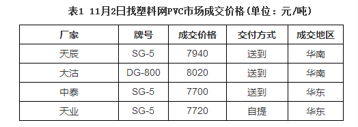 據(jù)找塑料網(wǎng)成交數(shù)據(jù)顯示(見表1)今日上午國內(nèi)PVC市場成交價格繼續(xù)上調(diào),場內(nèi)貨源緊俏依舊是市場拉漲的主要原因。西北貨源運輸困難,車皮緊張,汽運費用再度拉漲60-70元/噸,有力支撐價格高位。期貨市場跳水,但在缺貨的局面下,已經(jīng)難以控制現(xiàn)貨市場了。今日華東電石法SG-5主流價格維持在7600-7700元/噸(自提);華南市場電石法SG-5主流成交價7800-7850元/噸(自提)。找塑料國內(nèi)PVC實際成交指數(shù)為968點,較上一交易日上調(diào)5點。