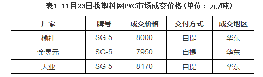 據(jù)找塑料網(wǎng)成交數(shù)據(jù)顯示(見表1)今日PVC期貨再度轉(zhuǎn)入大跌格局,現(xiàn)貨市場觀望氣氛濃厚,拿貨意向薄弱,個別生產(chǎn)企業(yè)也出現(xiàn)下調(diào)現(xiàn)象,但據(jù)找塑料聽聞,近期西北生產(chǎn)企業(yè)聯(lián)合體正在秘密籌備保價會議。今日華東5型普通電石料主流價格維持在7900-8200元/噸;華南市場電石法SG-5主流成交價8300-8400元/噸(自提)。