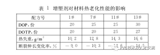 由表1可知:13#的熱失重比其他三個配方大,原因是增塑劑加入量較多揮發(fā)量增大所致。熱失重與增塑劑的揮發(fā)、氯化氫的逸出、低分子物質(zhì)的析出等有關;熱失重會在一定程度上影響塑料的斷裂伸長變化率。