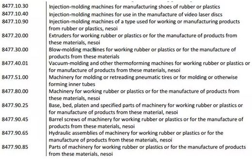 其中,可能會(huì)涉及塑料加工行業(yè)的產(chǎn)品有: