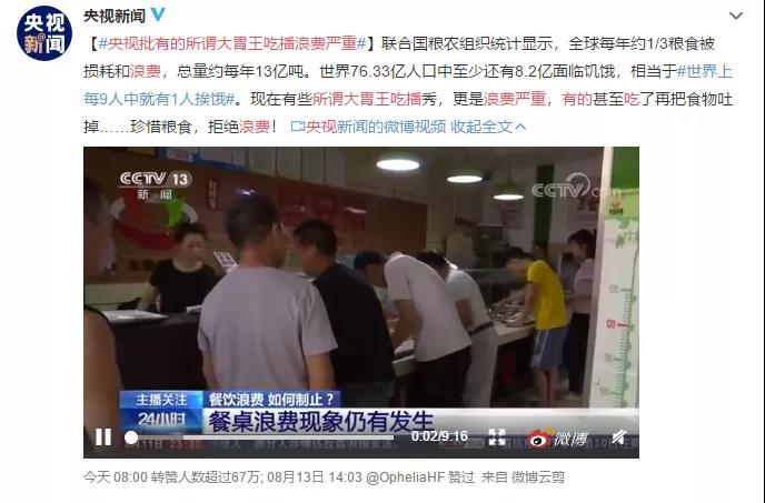最近央視痛批“大胃王”為了吸引關(guān)注浪費(fèi)糧食。如今短視頻APP上的“大胃王”吃播正在驟減,糧食問題再度成為大眾的關(guān)注點(diǎn)。