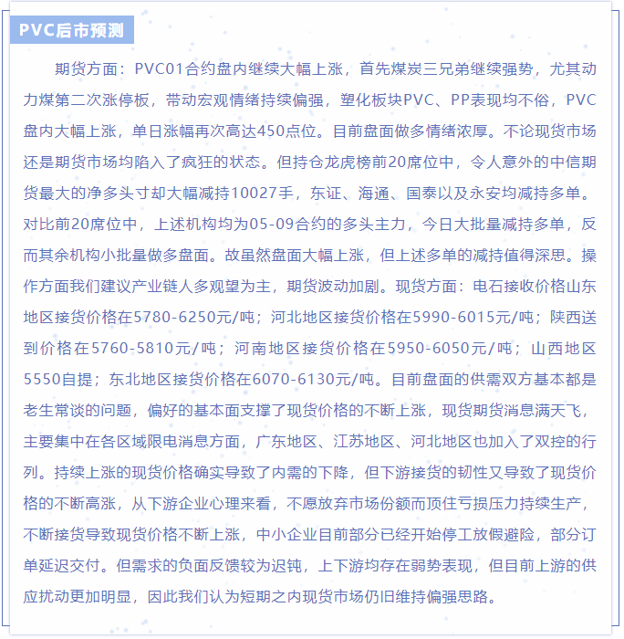 文章標題:PVC:山雨欲來風滿樓,期貨瘋狂突破前高,現(xiàn)貨單日漲幅高達500元/噸